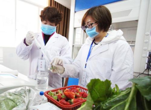 天津農產品檢測中心設在蔬菜批發市場旁邊,檢測中心的工作人員可以快速方便的來到批發市場進行抽樣、記錄。